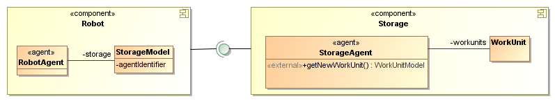 Note that the robot does no longer have a direct association with the storage, but has access to its agent identifier